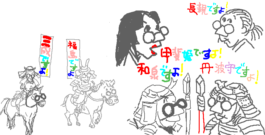 上の絵は、右がOGMせんせいによる和泉(柴崎和泉守)