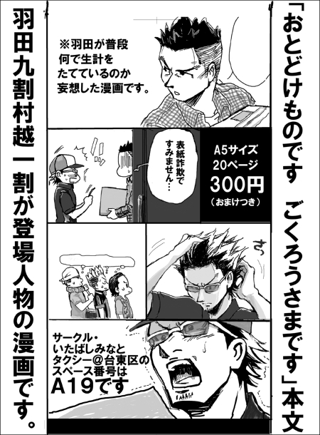 羽田が普段なにをして生計をたてているか妄想した漫画です。
