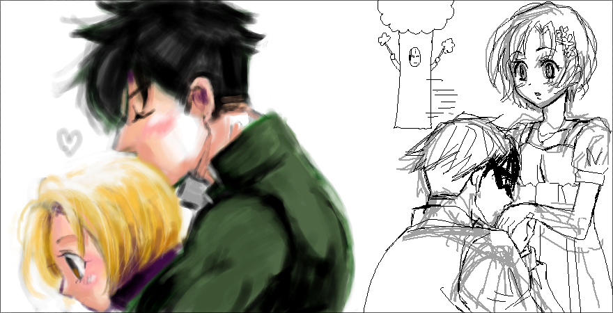 右側のが昔描いた線画に色つけようとした分。結局途中。