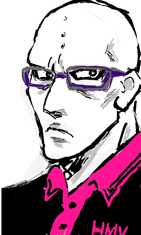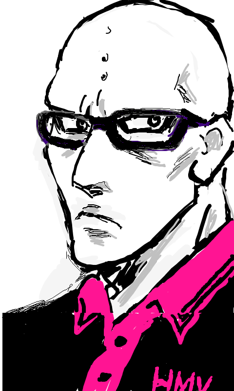 落書きですけど。よく見ると紫が入ってるよ。このメガネ。