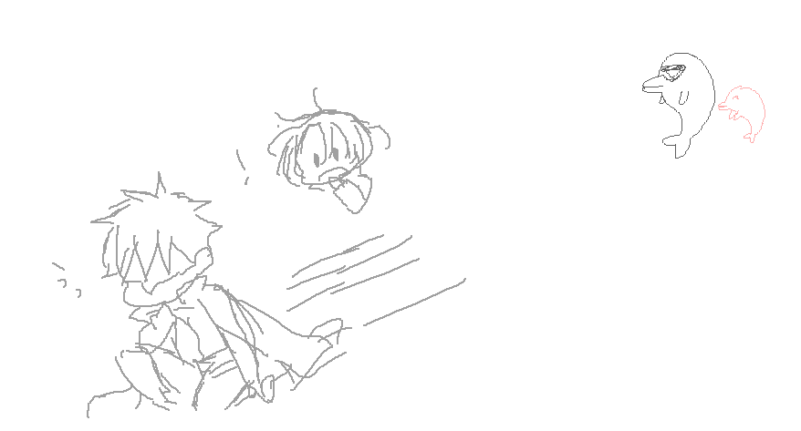 なかなかカオスです。ひらパーのイルカを某さんが描いてくれたり笑