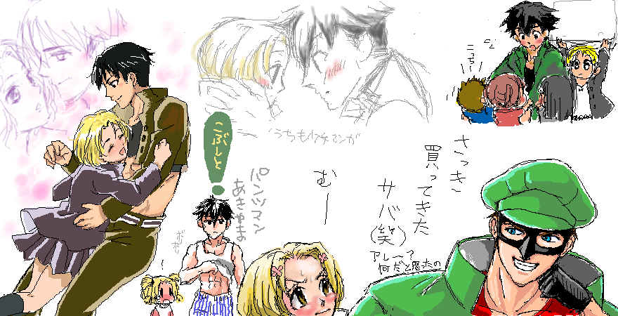 ついでによつばをひきずって、パンツマンあきやまもらくがき。