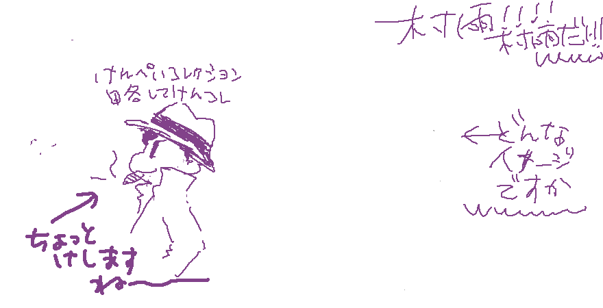 今回はけんじコレクション略してけんコレを描いてみた尊子。