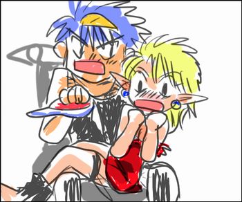 上の絵は、あの後ダーが「目のやり場に困るから着てろ」って姐様に