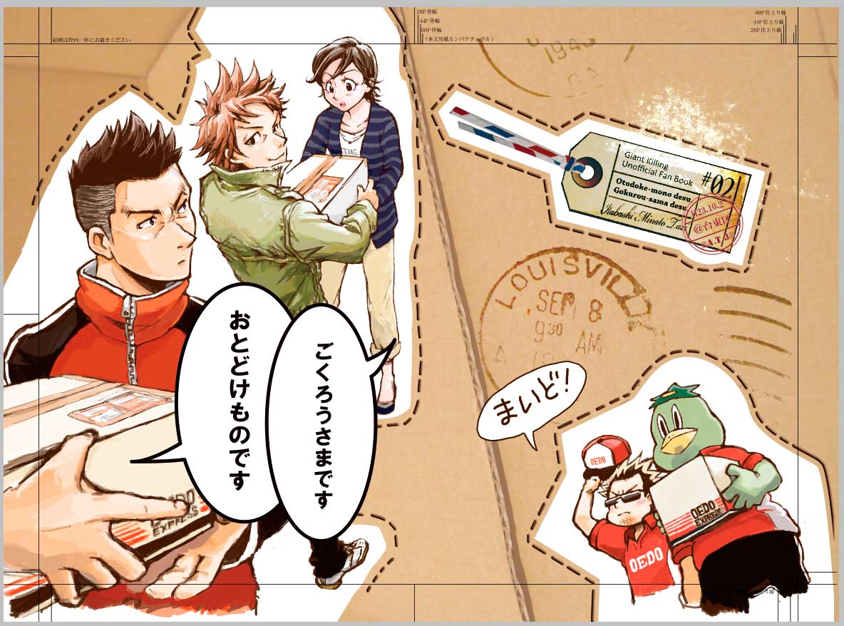 ちなみにこの表紙だと、秋山→こんさん・卑怯→沖蔵さん・こぶし→尊子 って割り振りです。