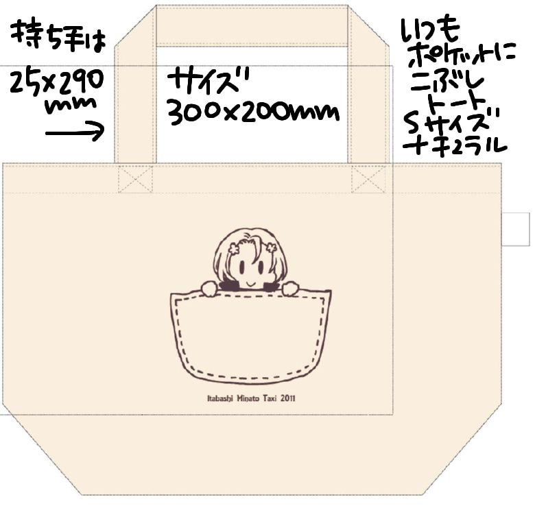 1.いつもポケットにこぶしトート/Sサイズ/白/イラストインク色・茶 900円