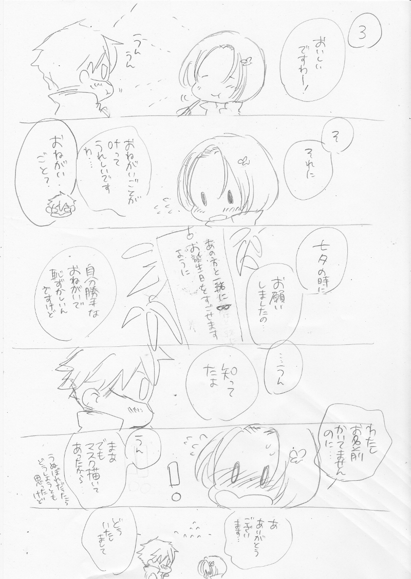 七夕のらくがきをした時に、某さんが「こぶしちゃんのお願いごとは