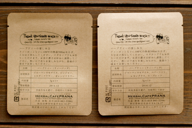 あとノベルティでハーブティバッグを配布します。